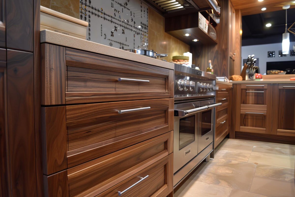 ✅ Plywood box construction The cabinet box, sides, top, bottom, and back, should be plywood, not particleboard. Plywood’s cross-grain lamination resists moisture and structural fatigue far better than particleboard, which swells and weakens over time in kitchen environments.
